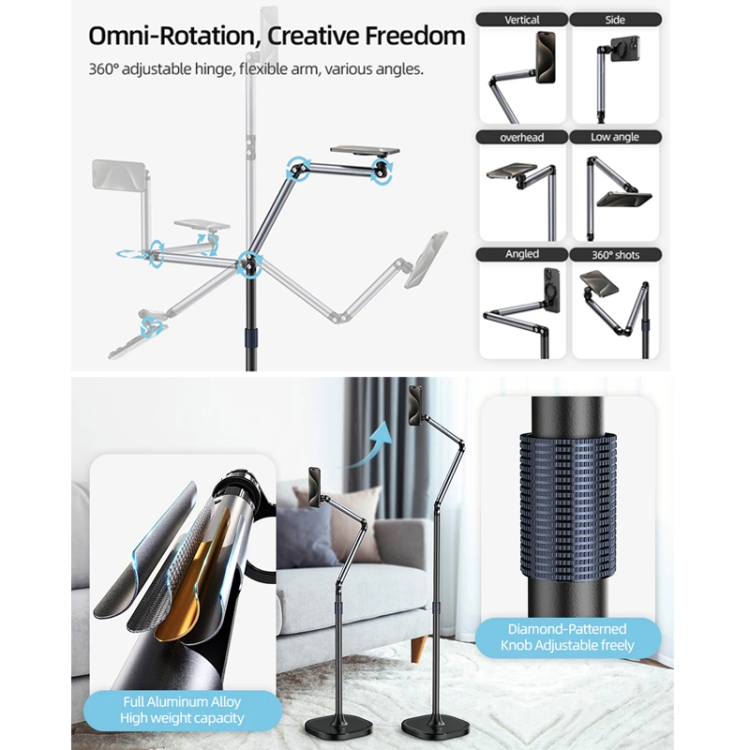 - 📏 ارتفاع قابل تنظیم ۶۰ تا ۱۶۰ سانتیمتر: مناسب برای فیلمبرداری، لایو استریم، کلاس آنلاین و تماشای فیلم