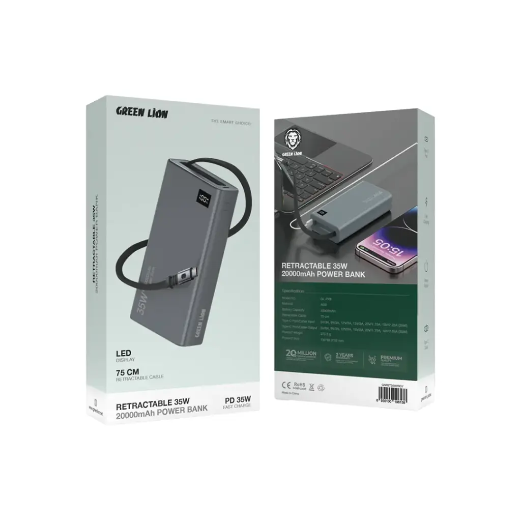 پاور بانک گرین لاین Green Lion GNRET35W20 Retractable 35W 20000mAh Power Bank