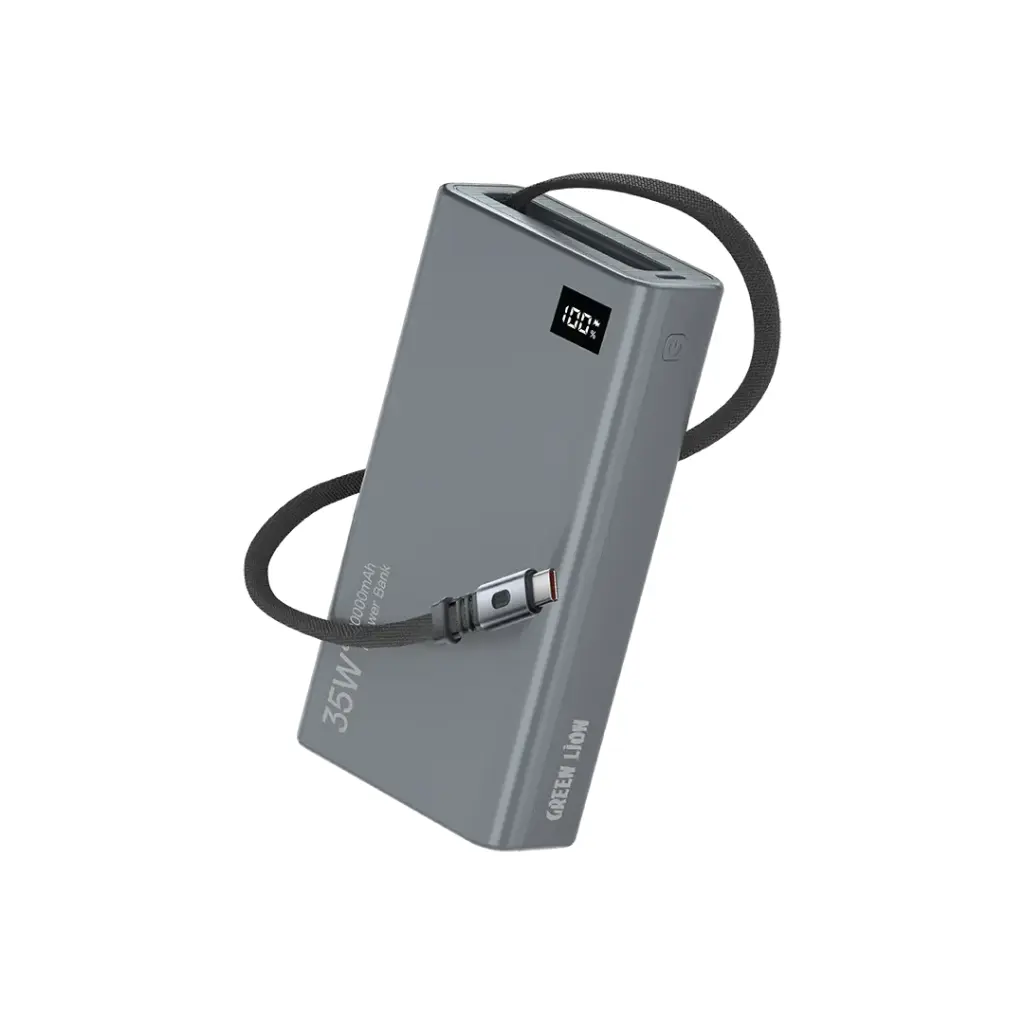 پاوربانک Green Lion GNRET35W20 یک منبع انرژی مدرن و هوشمند است که با ظرفیت ۲۰۰۰۰ میلیآمپر ساعت و توان ۳۵ وات، نیاز شارژ روزانه شما را در هر شرایطی برطرف میکند. طراحی جمعشونده آن با کابل داخلی ۷۵ سانتیمتری، حملونقل و استفاده را سادهتر کرده و شما را از کابلهای اضافه بینیاز میسازد.