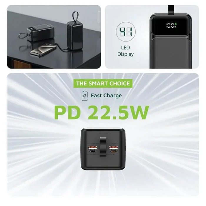 - 🔋 ظرفیت غولآسا 50000mAh – شارژ چندباره گوشی، تبلت و حتی لپتاپ