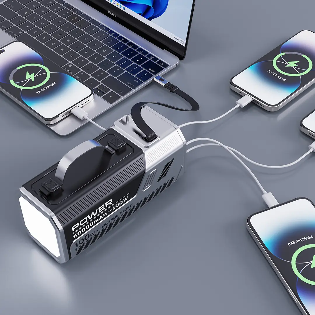 - 🔋 ظرفیت فوقالعاده 50000mAh – شارژ چندینباره گوشی، تبلت و حتی لپتاپ