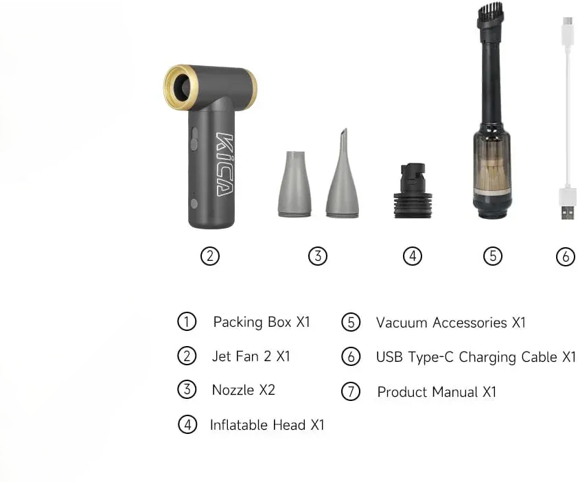 اگر بهدنبال یک دستگاه همهکاره و قابل حمل هستید که هم کارایی جاروبرقی داشته باشد و هم بهعنوان یک فن قدرتمند عمل کند، کیت جت فن KiCA 2S بهترین انتخاب برای شماست. این دستگاه کوچک و جمعوجور، برای تمیزکاری، باد کردن وسایل و حتی کاربردهای خلاقانه طراحی شده است.
